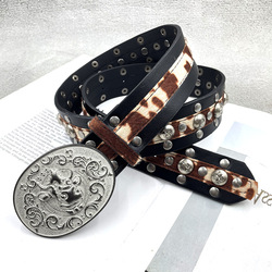 Cintura in Stile Punk Rock Y2K con Grande Fibbia in Metallo, Stampa Mucca in Pelle PU, Cintura alla Moda per Cowboy e Cowgirl